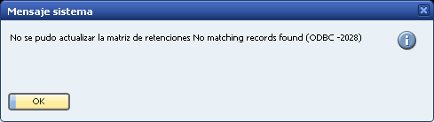 - En ocasiones se presenta un error de matriz en la tabla de Retenciones, este se presenta porque el sistema realiza un calculo de la retención con respecto a la base. Este error no genera inconvenientes tanto en el calculo de las retenciones como en la generación de la legalización.