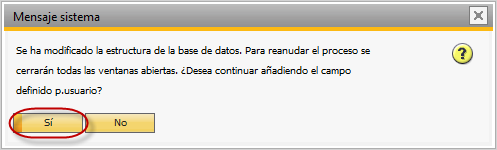 - Espere que cargue nuevamente el addon y seleccione SI en el mensaje que indica que la estructura se ha actualizado.