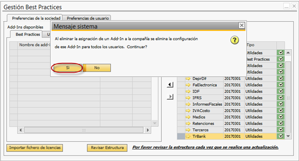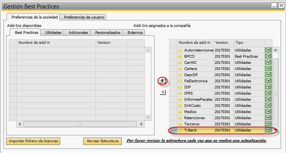 NOTA: Antes de asignar el nuevo addin de transferencias Bancarias 2TrBank se deberá desasignar el addin TrBank para su correcto funcionamiento.