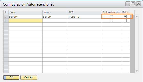 Recuerde que no se puede utilizar la opción de Batch en autorretenciones si el AddIn retenciones no esta activo. En adición a lo anterior, el SN sobre el cual tenga autorretenciones configuradas, no puede ser autorretenedor para que las facturas de dicho SN aparezcan en el batch.