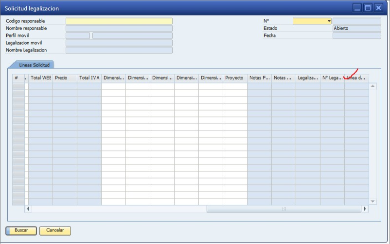 - Las líneas de la solicitud no pudieron haberse asignado ya a otra legalización, es decir, en la solicitud el campo Legalización destino debe estar vacío.