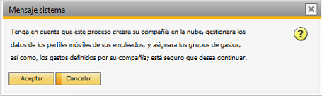 Desde esta opción el usuario sincroniza la información de los perfiles móviles que existen en la nube, los grupos de gastos y gastos, y creará la compañía en la nube.