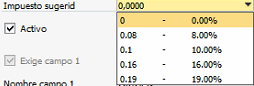 Seleccione el impuesto que irá por defecto para este gasto, el usuario móvil podrá actualizar el impuesto cuando este registrando el gasto desde el móvil. Estos impuestos corresponden a los parametrizados en la tabla Impuestos LegaliSApp. |