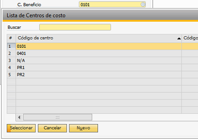 Seleccione cada uno de los Centros de Costos que irán asociados por defecto a cada perfil móvil que se crea por primera vez. |