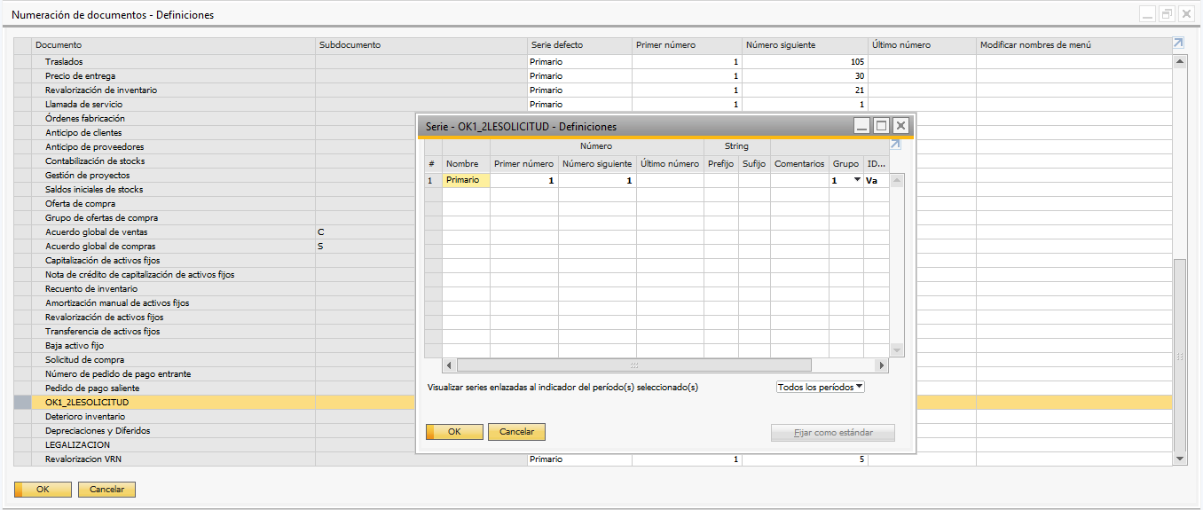 Seleccione una de las series configuradas para las solicitudes de legalizaciones. |