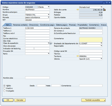 - Ingrese al dato maestro del socio de negocio.