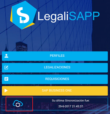 Para poder visualizar en SBO el perfil creado y continuar con su parametrización para la funcionalidad de requisiciones, se debe llevar a cabo el proceso de sincronización de móvil a sap, para ello se debe pulsar sobre el icono mostrado continuación