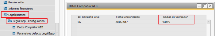 Nota: El código de verificación de la compañía se obtiene de la ruta Legalizaciones > LegaliSapp - Configuración