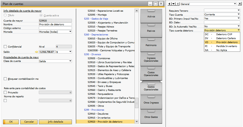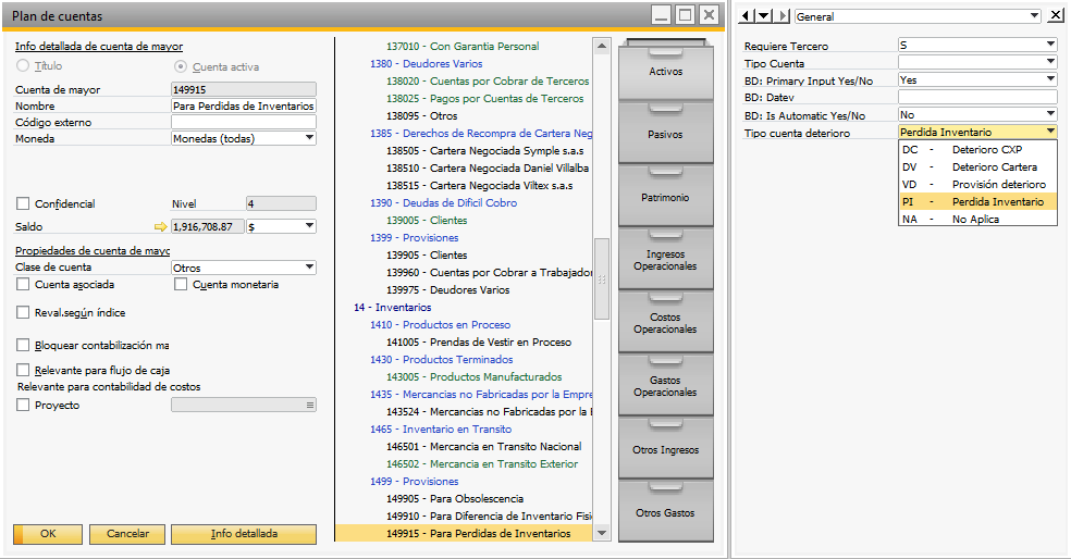 Debe configurar las cuentas asociadas al proceso de deterioro y recuperación de inventario.