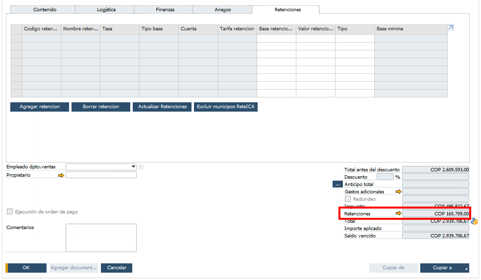 RETENCIONES ›› Aplicación de Retención en los documentos de Marketing ››