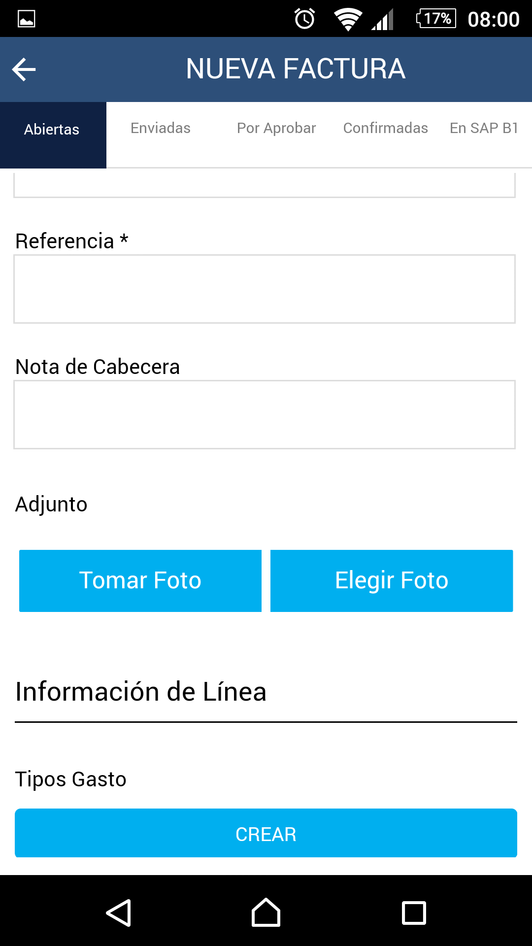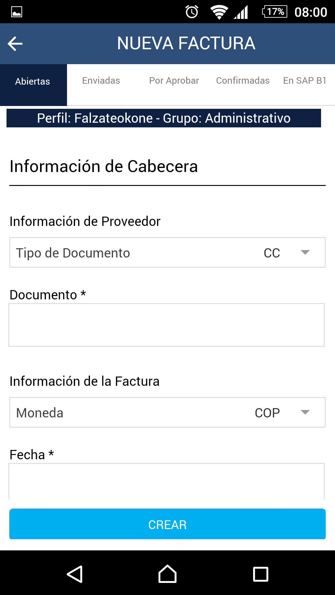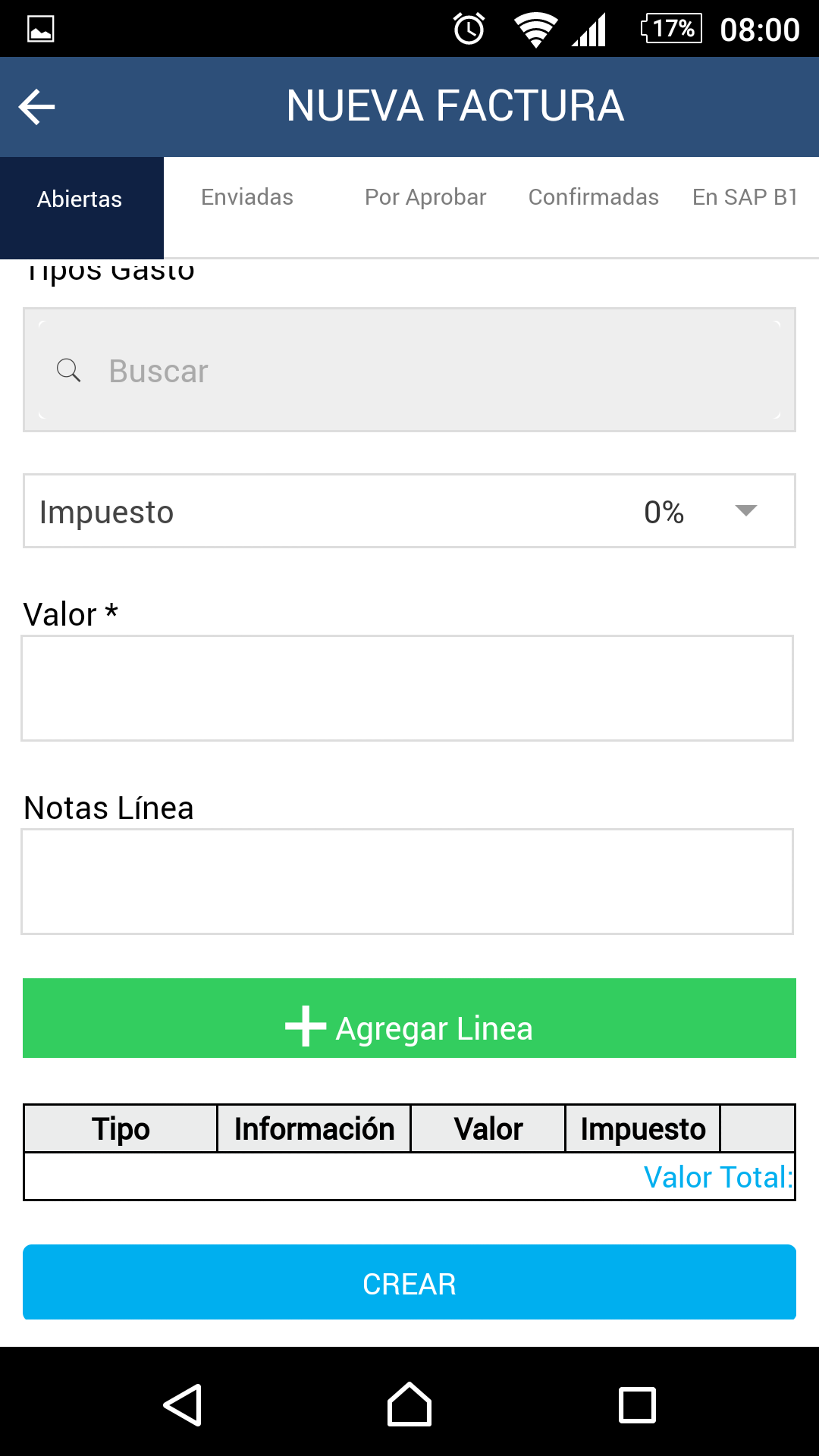 Luego de haber llenado el formulario, seleccione crear y acepte el mensaje de confirmación. Puedes crear las facturas que desees. Si creas facturas con diferentes tipos de moneda el total de la legalización en legaliSAPP se mostrará en pesos y aparecerá un mensaje indicándolo. Al momento de enviar la legalización en SAP te mostrara los totales individualmente.