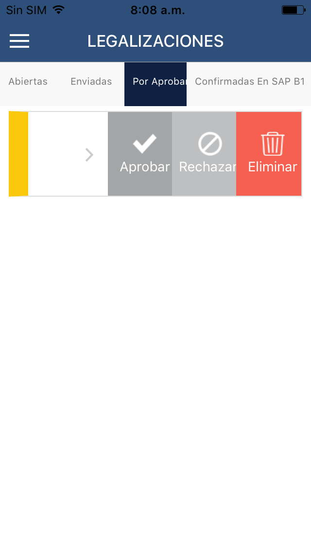 4. Aprueba la legalización: Este paso es solo para perfiles aprobadores. Solo te debes ubicar en la pestaña "Por Aprobar" y se sincronizarán todas las legalizaciones que tienes pendientes por aprobar. Para aprobarlas desliza hacia la izquierda la legalización y seleccionar aprobar. Te recomendamos