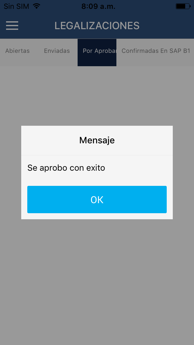 4. Sincroniza solicitudes en SAP Business One: Luego de que sincronices en SAP Business One la legalización en la aplicación se mostrará en la pestaña