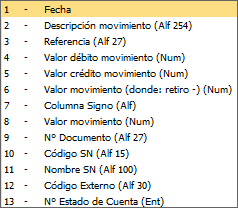 Definición de campos del extracto bancario