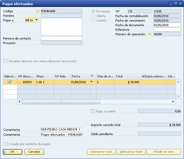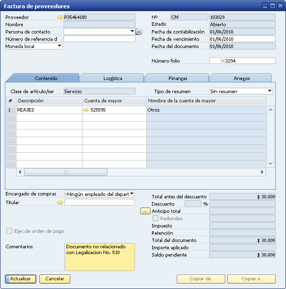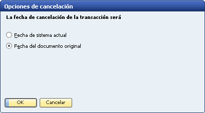 Dependiendo de la fecha en la que se realizó el pago, se usa una de las dos opciones. Si la legalización se hizo en el presente año, se usa la Fecha del documento original. En caso contrario, se usa la Fecha de sistema actual.