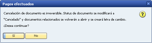 Al confirmar el proceso de cancelación del pago, hay que especificar la fecha de cancelación.