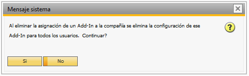 Para asignar a la compañía un add-in se debe seleccionar y luego dar click en el botón