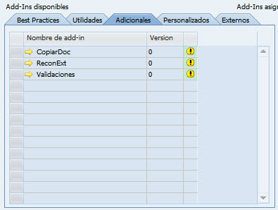 Esta opción ubicada en la parte derecha del formulario permite visualizar todos los addins seleccionados por un Superusuario para ser empleados en la compañía.