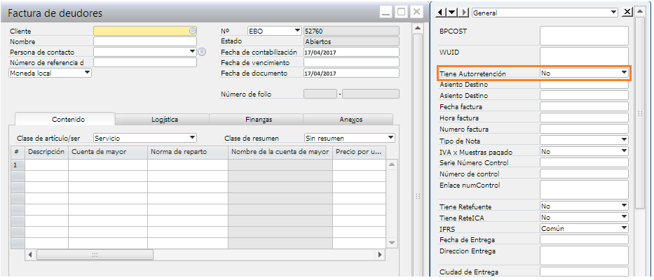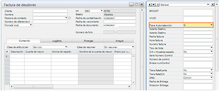 Para excluir una factura de ventas, se debe modificar el campo Tiene Autorretencion de No a Si.