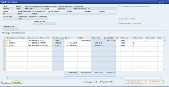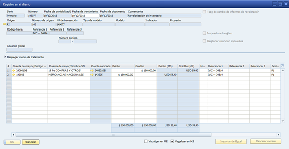 Con el addin IVACosto realizamos un asiento OKIM para reversar este registro de la cuenta diferencia en precio y la cuenta de impuesto.