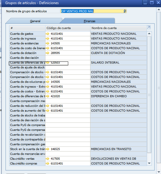 Con esta configuración de manejo de costos, al realizar una NC el sistema afectara en el asiento directamente la cuenta del costo y la contrapartida de esta la toma de la determinación de cuentas (cuenta de diferencia en precio)