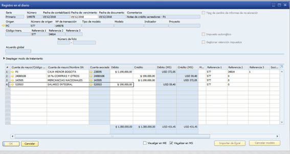 Cuando se tiene la anterior configuración, las Notas créditos funcionan de la siguiente manera