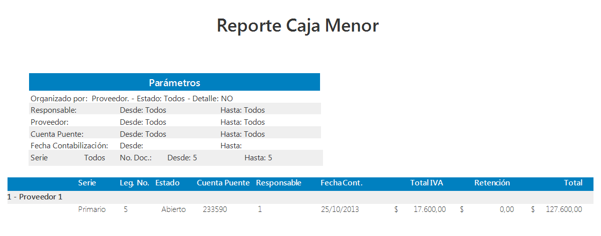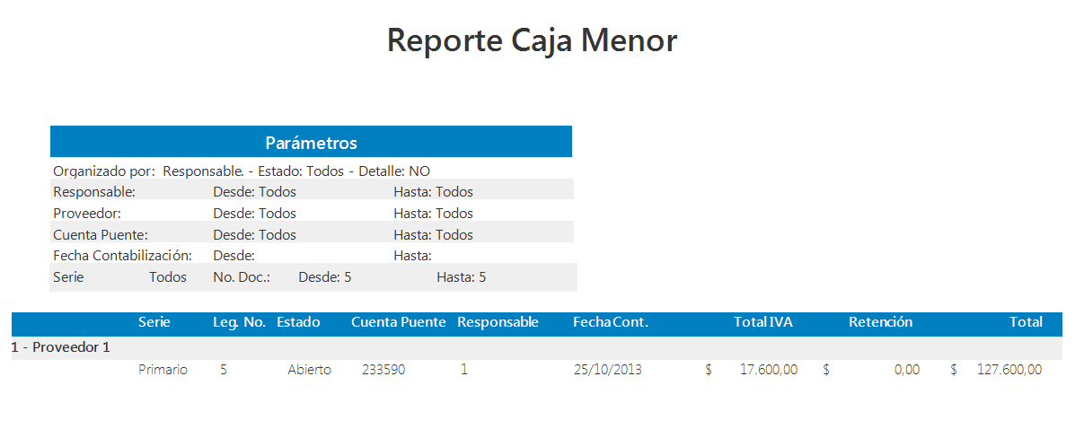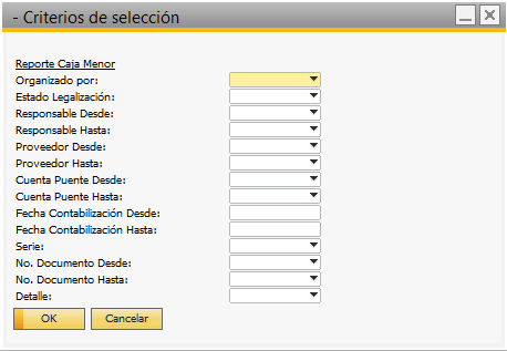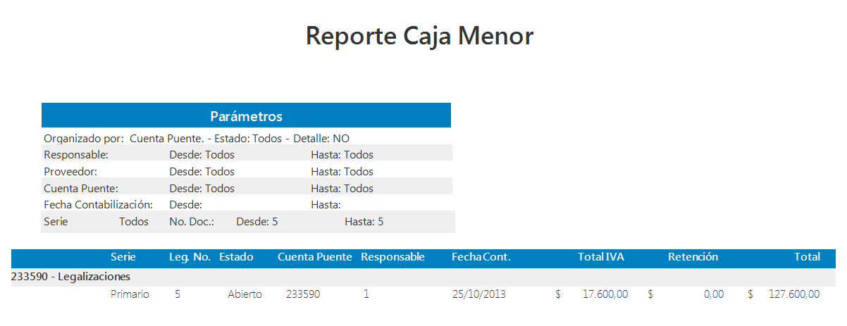 Finanzas > Legalizaciones > Informes > Informe Caja Menor