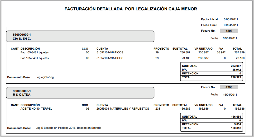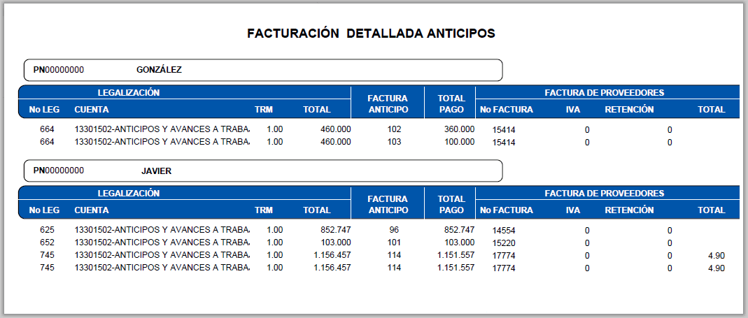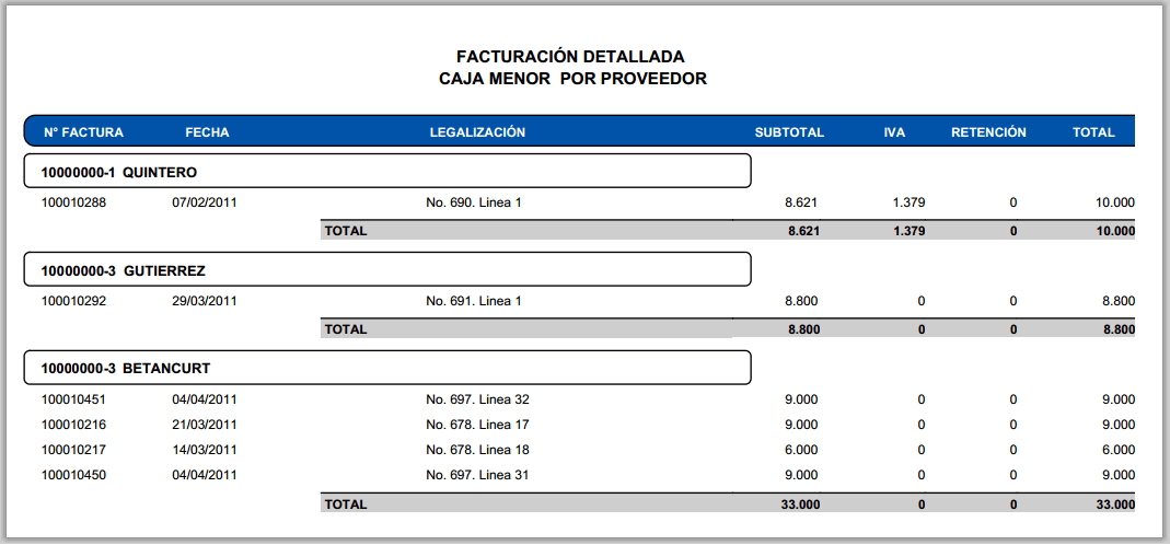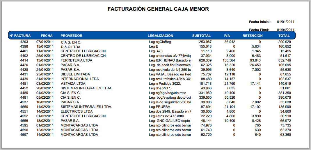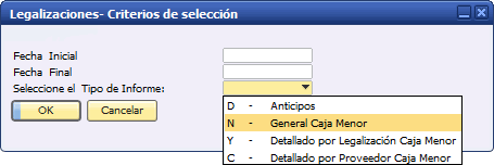 Finanzas > Legalizaciones > Informes > Informes Generales