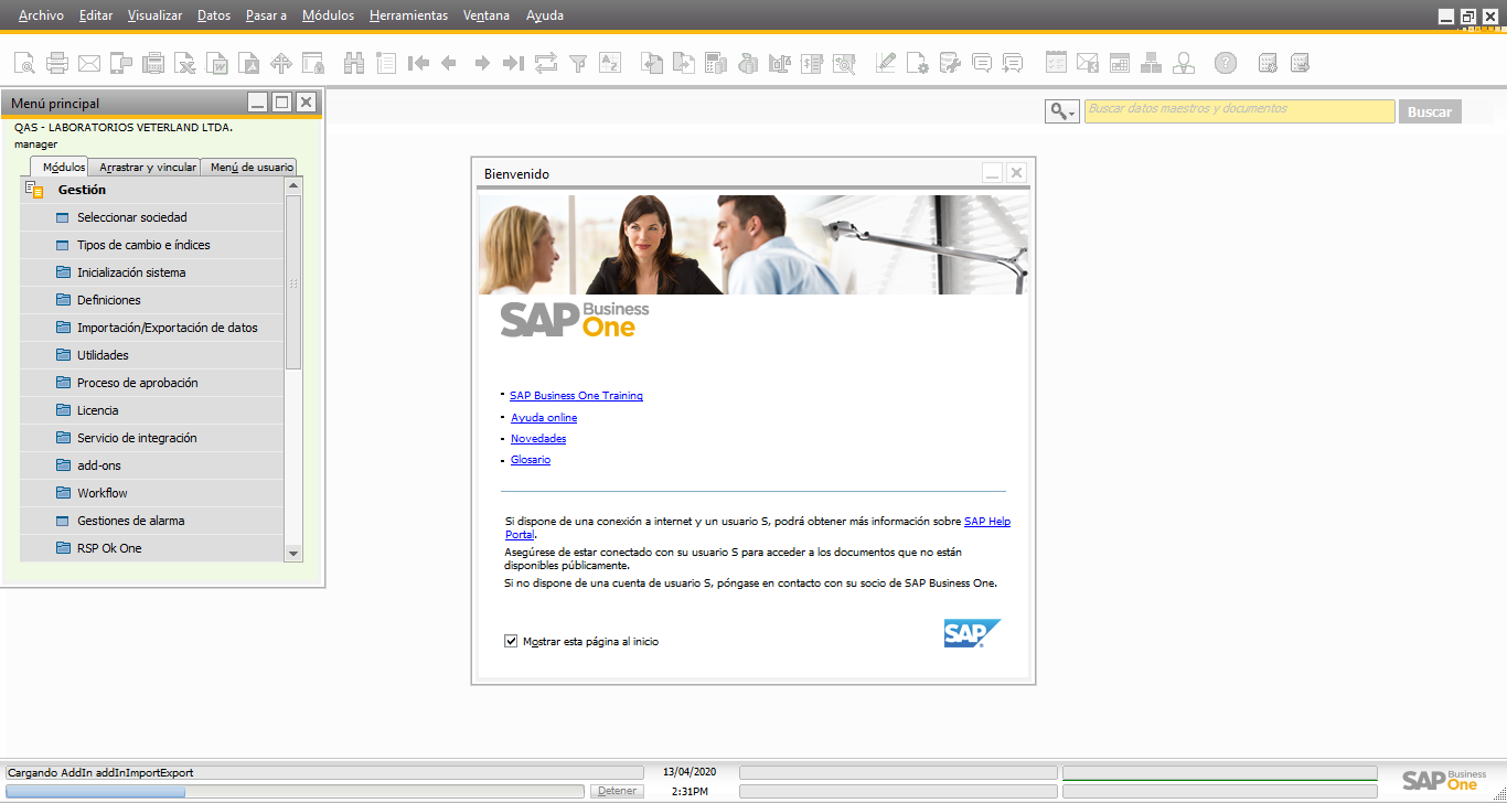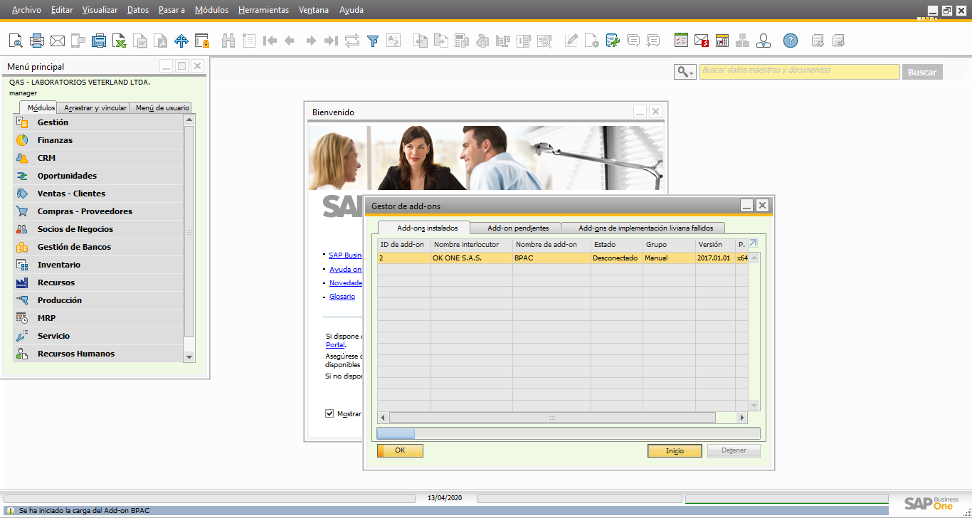 - Se reinicia de nuevo SAP , se iniciara la carga del addon.