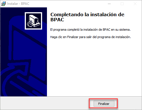 - Al terminar la instalación el proceso de instalación pulsar el botón “Finalizar”.