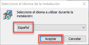 - Se selecciona el idioma en el que se desea realizar la instalación y se pulsa el botón “Aceptar”.