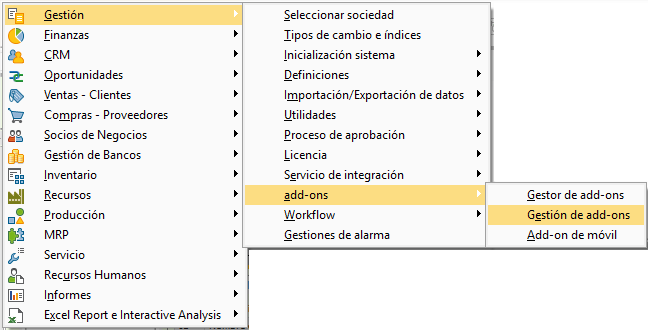 Para esto ingresamos a la ruta “Gestión – AddOns – Gestión de AddOns”