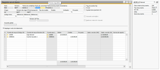 Finalmente, debido a que el asiento es manual, es necesario que en los campos definidos por el usuario, se asocie un documento de marketing esto para cumplir con la normatividad legal vigente. Para esto debe realizar lo siguiente: