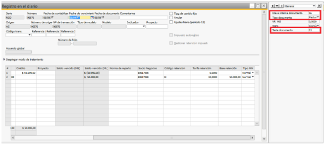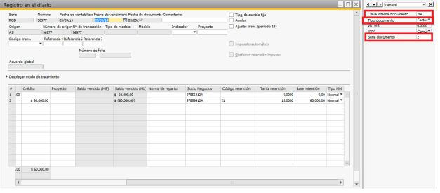 - Seleccione la clave interna del documento, esta clave está relacionada al número con el cual fue creada la factura\nota.