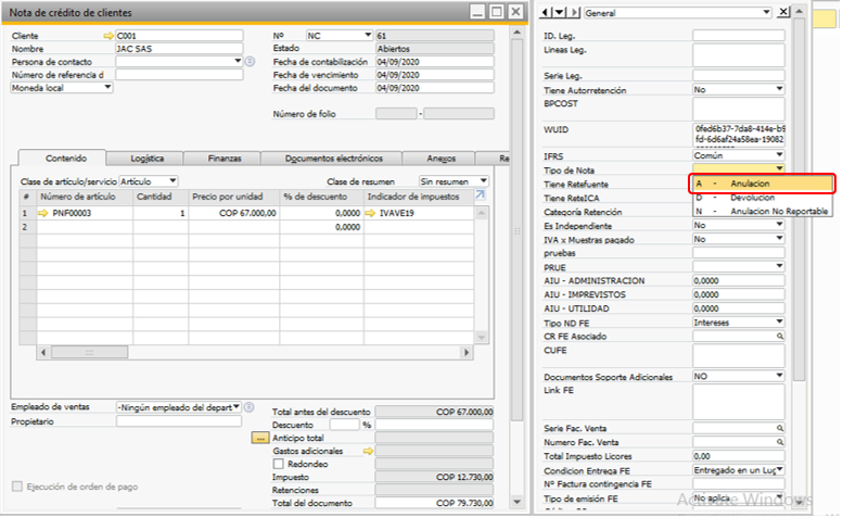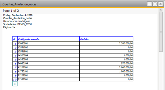 El reporte de anulación permite consultar las cuentas que son afectadas al momento de crear una nota crédito y que en el campo de usuario Tipo Nota se seleccione la opción ANULAR, esto con el fin de que el usuario realice las reclasificaciones en las cuenta del ingreso a que haya lugar.