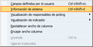Una vez activada la información del sistema, coloque el puntero de mouse sobre el cuadro de texto; en la parte de inferior de SAP Business One, aparecerá la información interna del cuadro de texto, tal y como se muestra en la imagen.