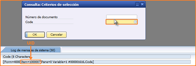 Encontrar el UID del cuadro de texto al que se le adicionará o modificará sus valores fijos.