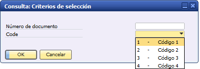 En la imagen anterior se desea adicionar una lista de valores fijos al cuadro de texto "Code", para ello siga los siguientes pasos: